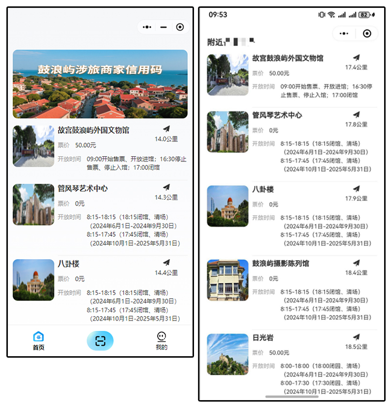 该系统还创新“信用 + 位置”智能推荐功能,基于游客实时定位,提供邻近景点(如日光岩、菽庄花园等)的导航功能,实现“消费场景+文旅景点”一键串联,进一步提升文旅服务质量。