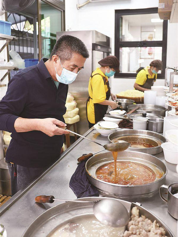 三、规范标准,坚守供厦食品安全关。吴民祝作为主要起草人,先后参与沙茶面、厦门碱面、虾面等多个供厦食品安全团体标准的起草和厦门特色美食制作规程制定,通过团体标准,将诚信、安全理念融入食品制作过程,保障食品安全,为行业社会信用体系建设提供了重要支撑。他耗时半年,成功研制出制作油葱粿用的碱水,每次生产出来的碱水,他都主动送检,无一例外。