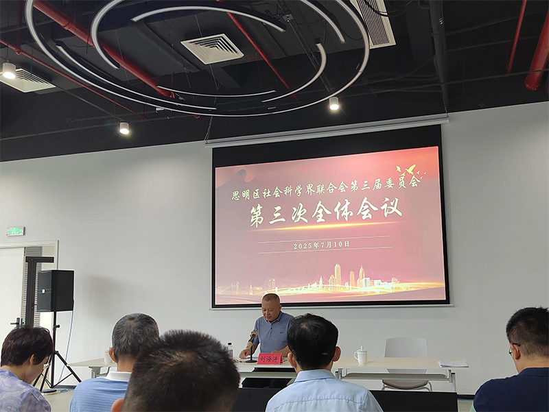 2025年7月10日,思明区社会科学界联合会第三届委员会第三次全体会议在滨海街道党群服务中心召开。区诚信促进会作为会员单位受邀参会,并在大会上作为社科类社会组织代表作专题交流发言,展现了诚信建设在社科研究领域的重要地位。